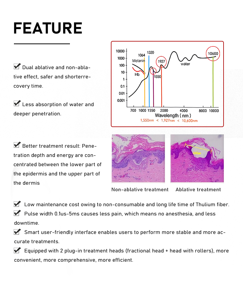 The principle of taibobeauty Vertical 1927nm Fractional thulium laser Machine